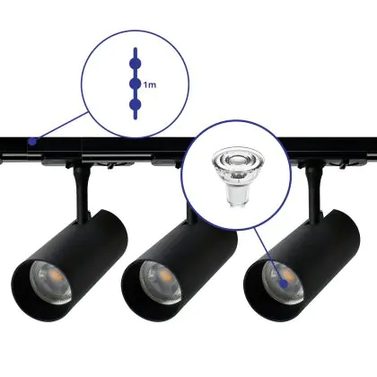 | Fabrikantnaam | Complete Straight 1-meter 1-Phase Track Set Black incl. 3x Spot fixture + GU10 2700K 3W Dim – 1 Mete | |