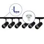 Complete Set 1-Fase Rail L 1 x 1 Meter Zwart | incl. 6x Spot + GU10 2700K 3W Dimbaar + Eindkap, Voedingsconnector en L -Verbindingsstuk