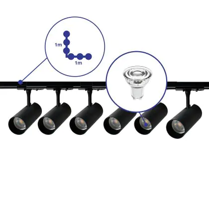 | Fabrikantnaam | Complete L shaped 1-Phase Track Set Black incl. 6x Spot fixture + GU10 2700K 3W Dim – 1 x 1 meter i | |