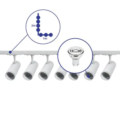 | Fabrikantnaam | Complete L shaped 1-Phase Track Set White incl. 7x Spot fixture + GU10 2700K 3W Dim – 1 x 2 meters i | |