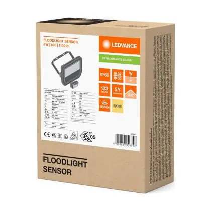 Ledvance LED Breedstraler Aluminium Zwart 8W 1100lm 100D - 830 Warm Wit | IP65 - Bewegings- En Lichtsensor - Symmetrisch
