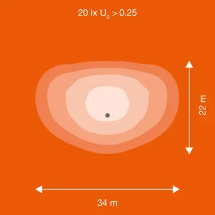 De lichtopbrengst (Lumen), geeft weer hoe krachtig het uitgestraalde licht is. Dit is belangrijk om te weten om de juiste sfeer te creëren. 0 tot 400 Lumen is bij uitstek geschikt voor accent- of sfeerverlichting. Een hoger aantal Lumen is, afhankelijk van de grootte van de ruimte, beter geschikt als ondersteunende- of basisverlichting. Heb je plafonds hoger dan 4 meter, dan is een lichtopbrengst van minimaal 8000lm aan te raden indien heldere verliching gewenst is (vb. in werkomgevingen).