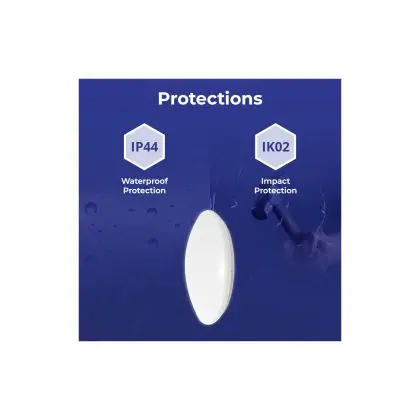 De IP waarde geeft de mate van bescherming aan tegen het binnendringen van vocht en stof. Het 1e cijfer (0 = niet beschermd t/m 6 = volledig stofdicht) geeft de bescherming tegen stof weer. Het 2e cijfer (0 = niet beschermd t/m 8 = beschermd tegen onderdompeling) geeft de bescherming tegen water weer. Producten met een IP44 waarde zijn spatwaterdicht en producten met een IP65 waarde of hoger zijn (volledig) stof- en waterdicht. |