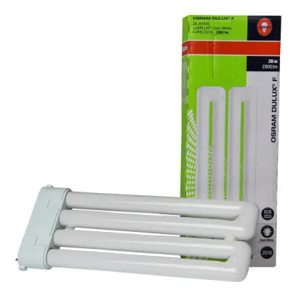 Bij (LED) spaarlampen bestaan er fittingen/lampvoeten met 2 pinnen of 4 pinnen. Kies altijd een spaarlamp met dezelfde lampvoet, anders past deze niet in het armatuur en werkt deze niet. Spaarlampen met een 2-pins fitting werken met een conventioneel voorschakelapparaat (EM) incl. starter. Spaarlampen met een 4-pins fitting werken met een elektronisch voorschakelapparaat (HF) zonder starter.
