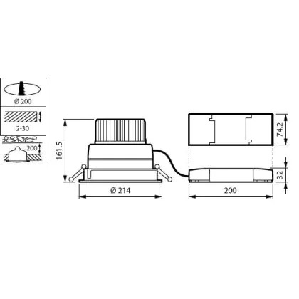 Philips LED Downlight LuxSpace Compact Lage hoogte DN570B 52.8W 6200lm 80D - 830 Warm Wit | 214mm - Aluminium Reflector